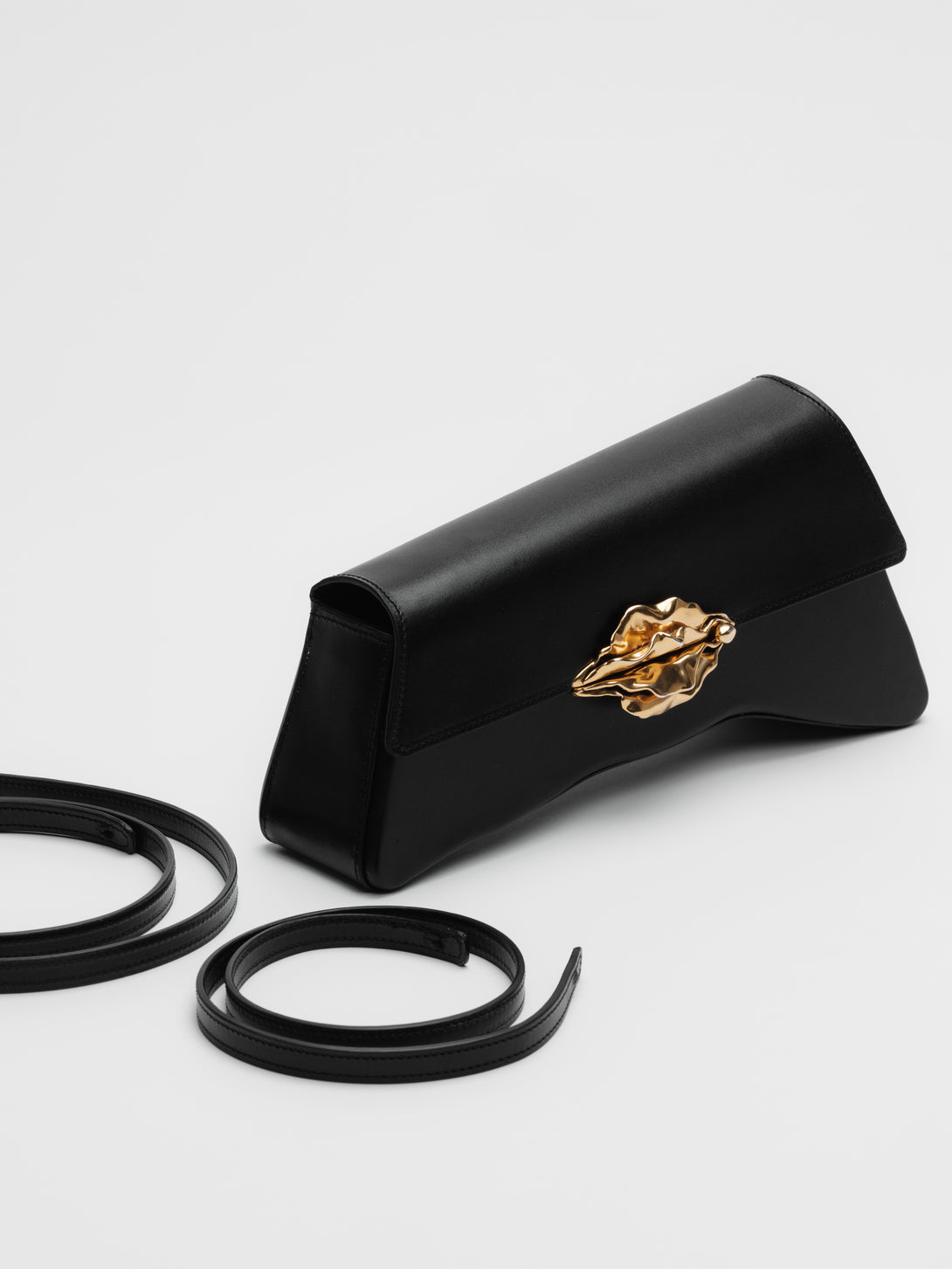 Designed as a precise volume with undulating contours, this shoulder bag is handcrafted in Italy from sumptuous, environment-friendly vegetable-tanned calf leather. The rhythmic lines of the bag's silhouette are echoed by intricate brass detailing, which includes a button clasp that opens the top flap in a single gesture. The Inanna offers three ways to wear: as a shoulder bag, crossbody bag, or handbag.