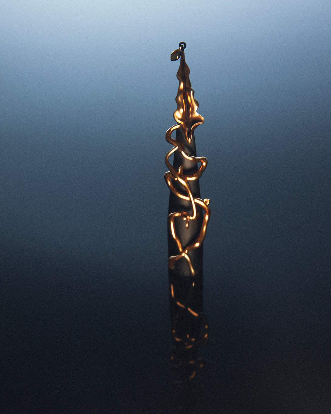 Inspired by the ornate nail guards worn by aristocratic women in ancient China, this piece reimagines tradition through a contemporary lens. Sculpted in black enamel and entwined with fluid, antique-gold metalwork, it evokes the interplay between strength and sensuality. Gilded iconography traces its sinuous form, a testament to both power and elegance.