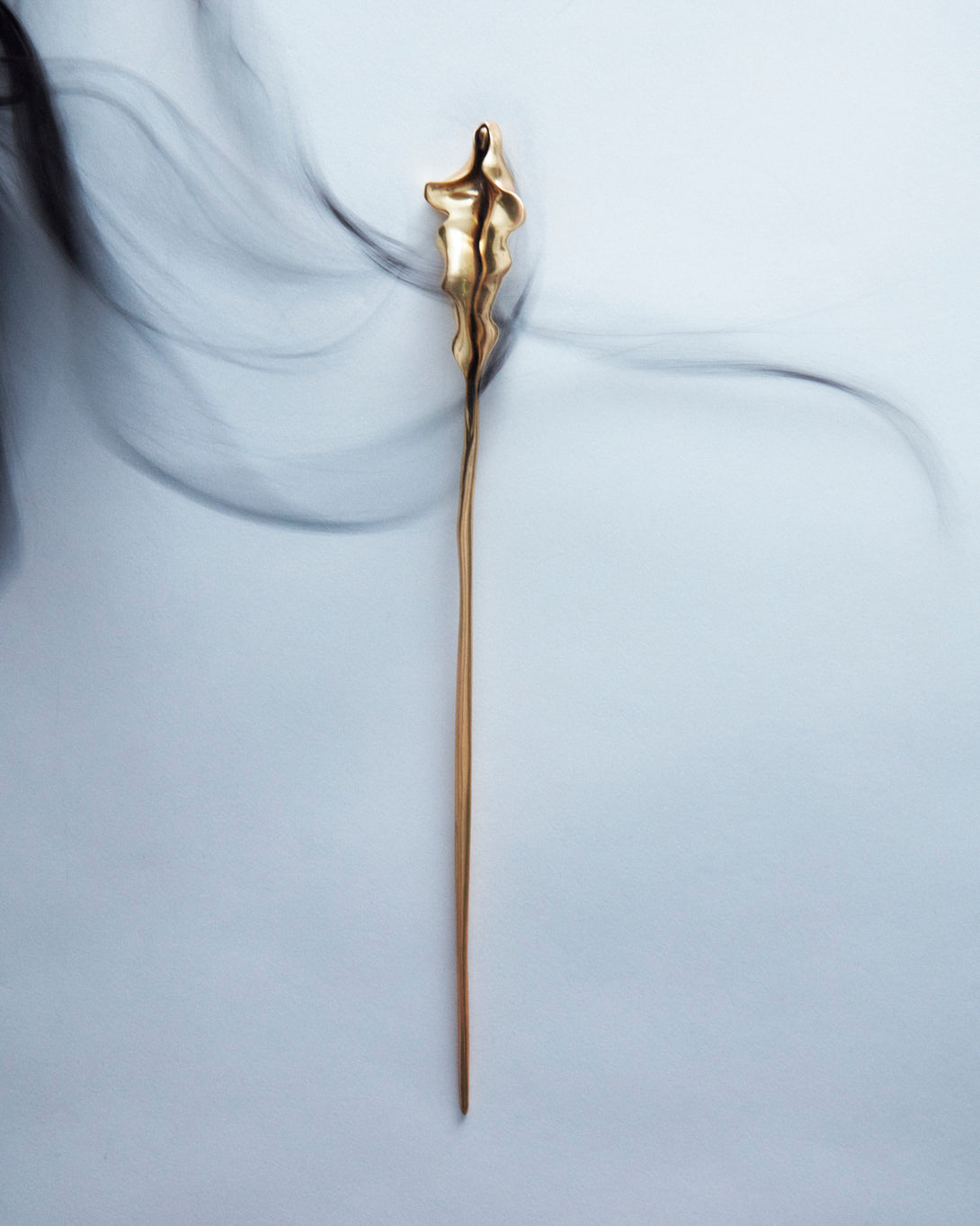 Sculpted in antique brass, its fluid contours elevate a simple gesture into a statement of strength and elegance. Designed to secure and adorn with effortless poise.