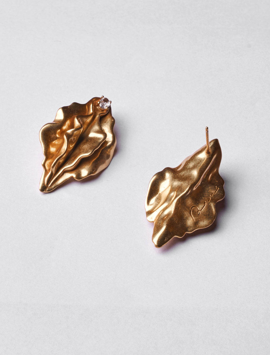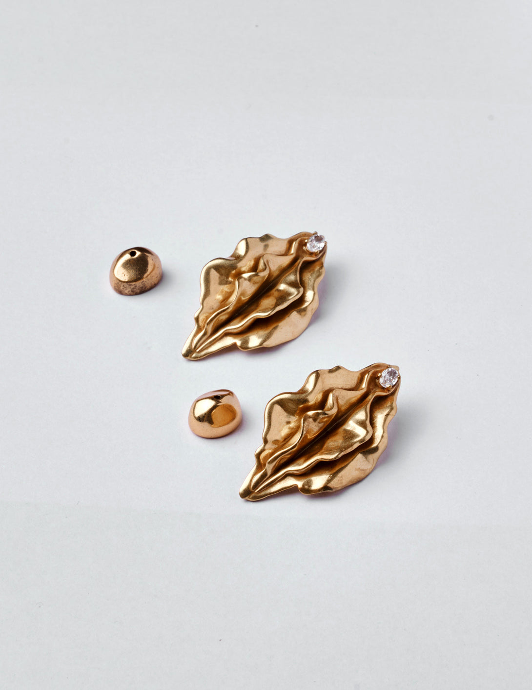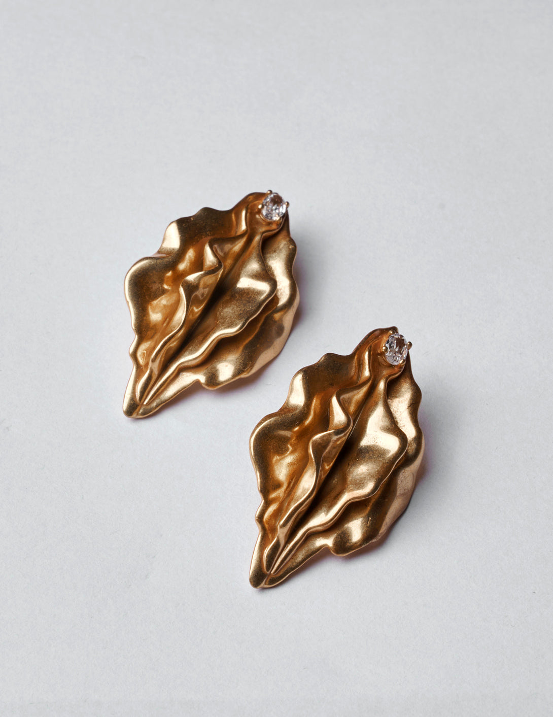 Crafted in antique brass, shapely contours honor the intimate as a new mode of feminine adornment; as a statement-making earring. Adorned with shimmering zircon gemstones for a refined touch. These statement-making earrings are sold as a pair.